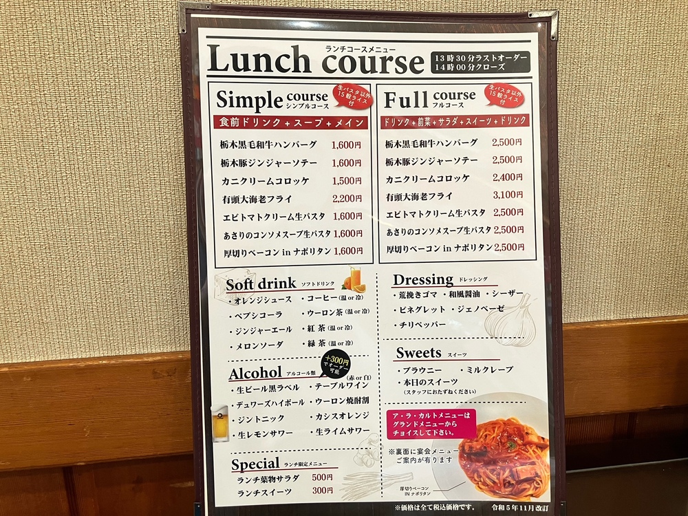 ランチメニューは、シンプルコースとフルコースがあります。