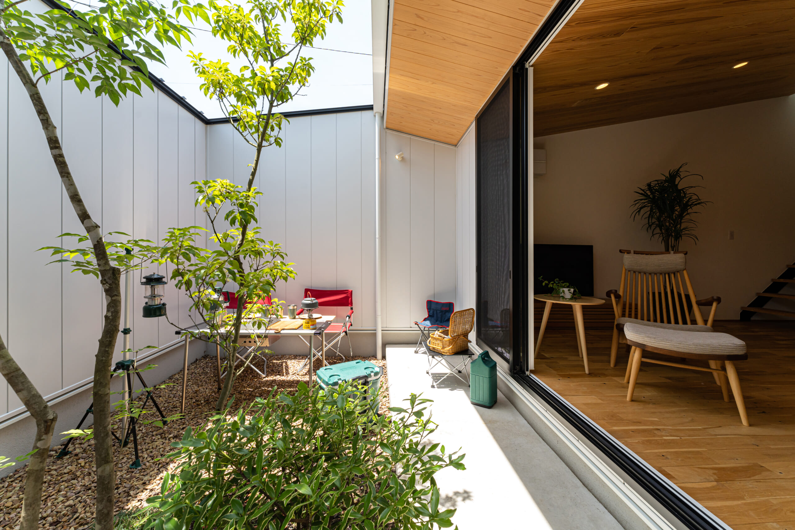 壁で囲われた8帖の広さの中庭は、家キャンプも出来て最高♪