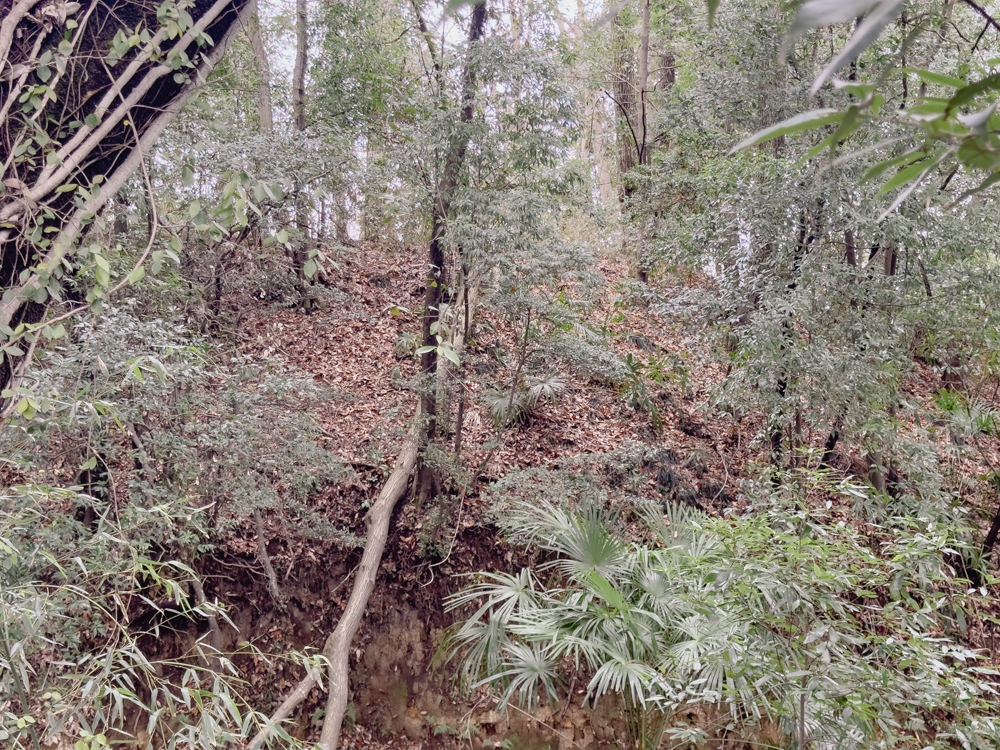鷲城跡の見どころは、鷲神社だけではありません。城の構造を知るうえで欠かせないのが、「土塁(どるい)」と「空堀(からぼり)」です。