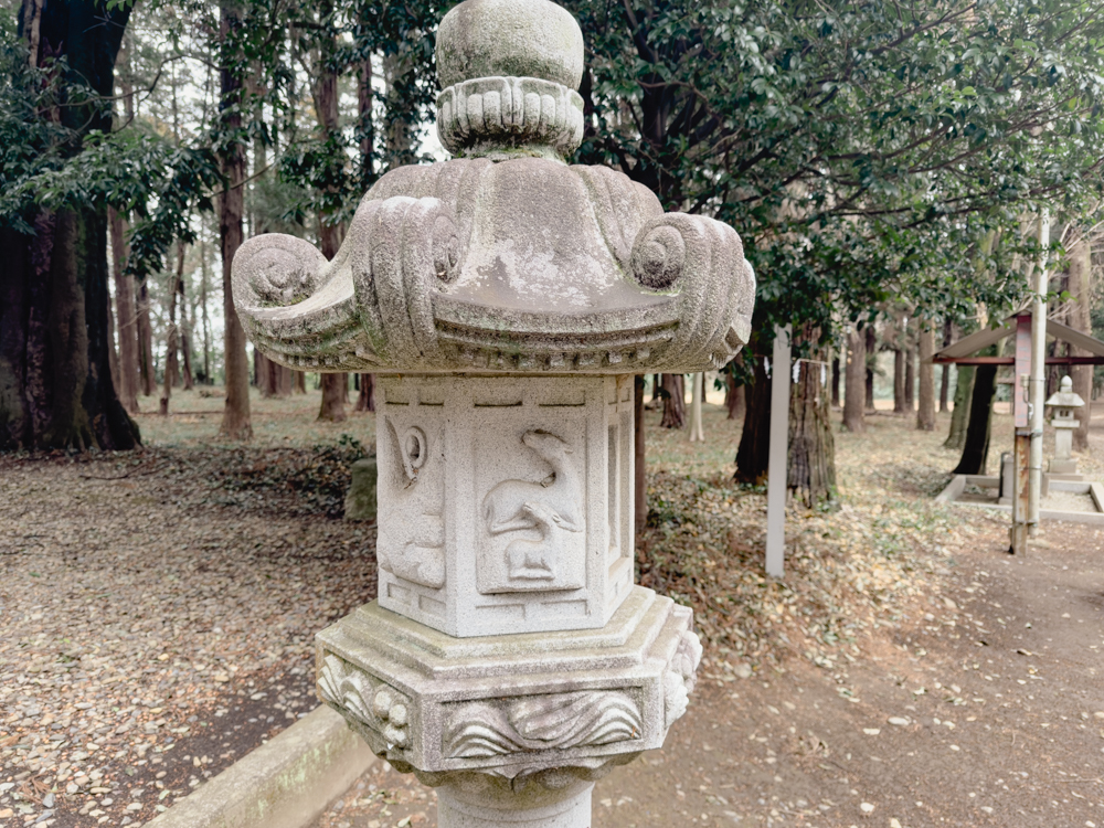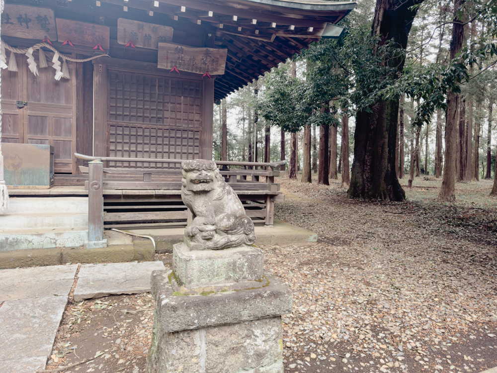 境内には獅子の像が置かれています。城跡であることを意識してか、どことなく他の神社の獅子像よりも勇壮に見えます。