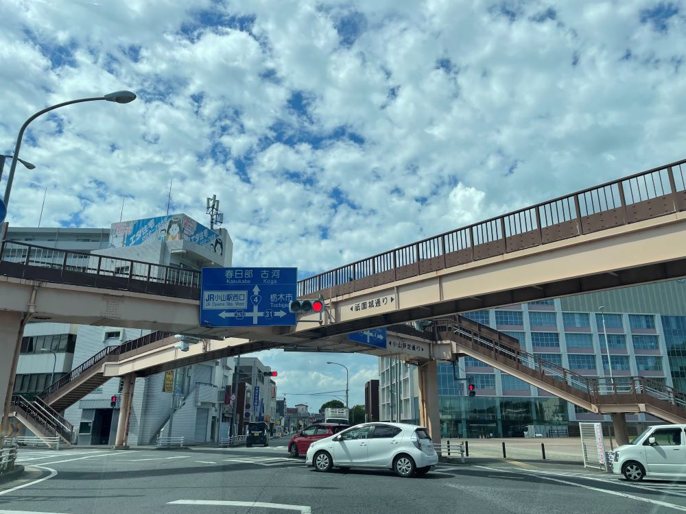 小山駅から市役所に向かうと大きな歩道橋が。こちらも特徴の一つ。