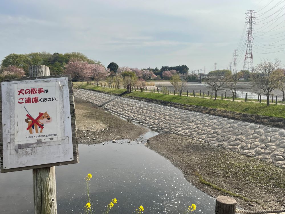 池の隅の方には少し水がありました。そして、水鳥の多い公園ですので、犬の散歩も禁止です。残念ですが、散歩はお控えください。