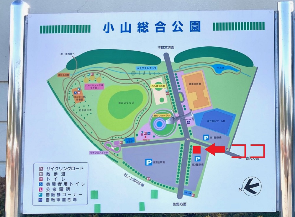 小山総合公園の広い駐車場を活用