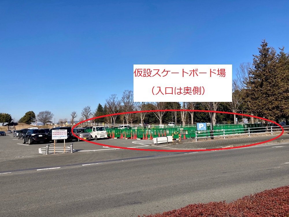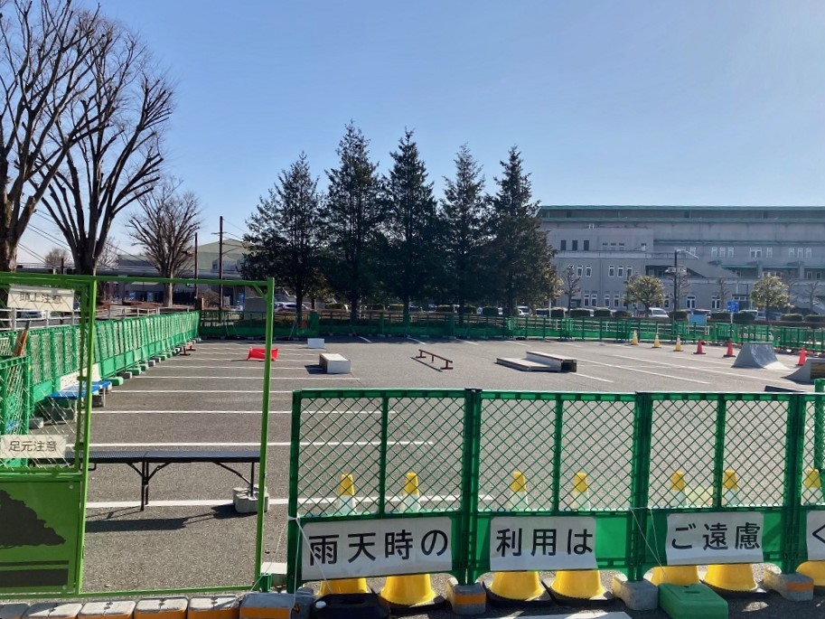 このうち、第3駐車場の一部が、今回の仮設スケートボード場になりました。