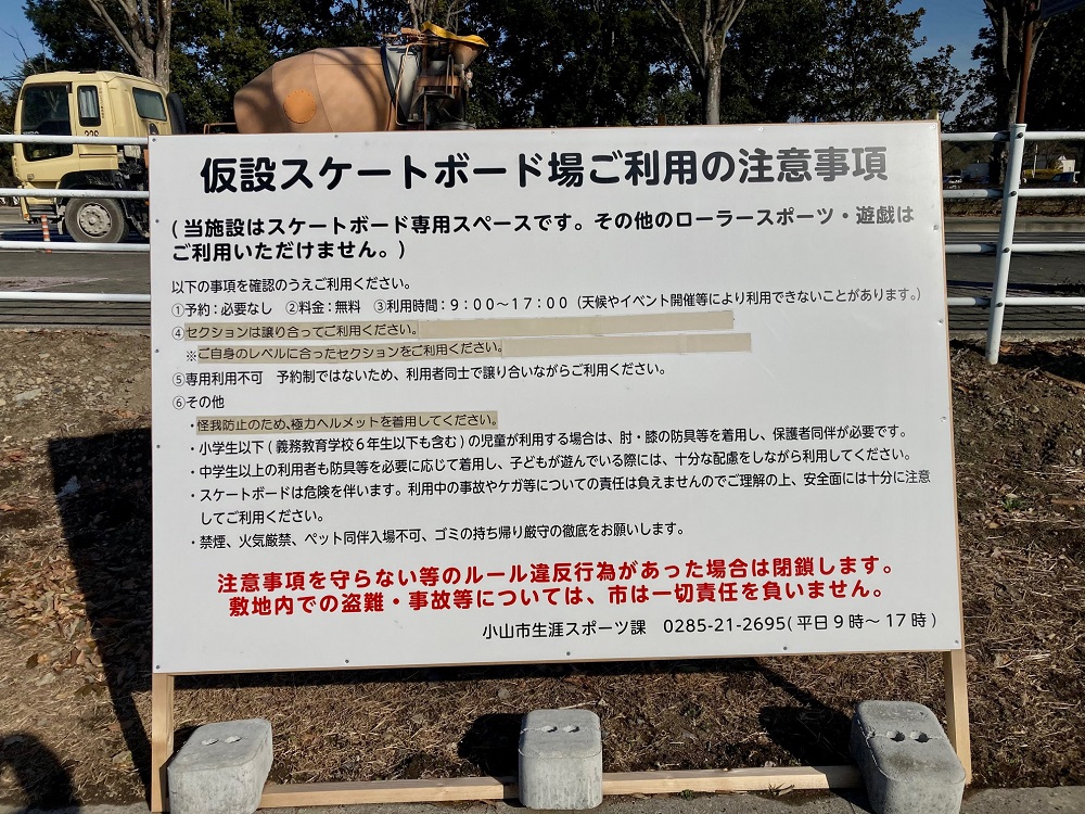 このスケートボード場ができるまで、小山総合公園内ではスケートボードの使用は禁止されていました。