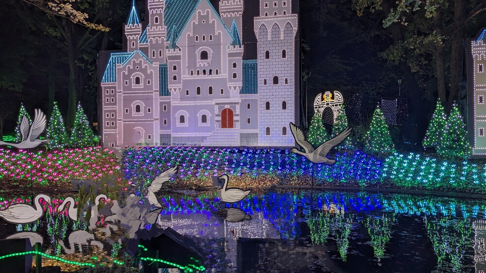 昼間の落ち着いた雰囲気と違い、イルミネーションが点灯されると幻想的な雰囲気が漂います。