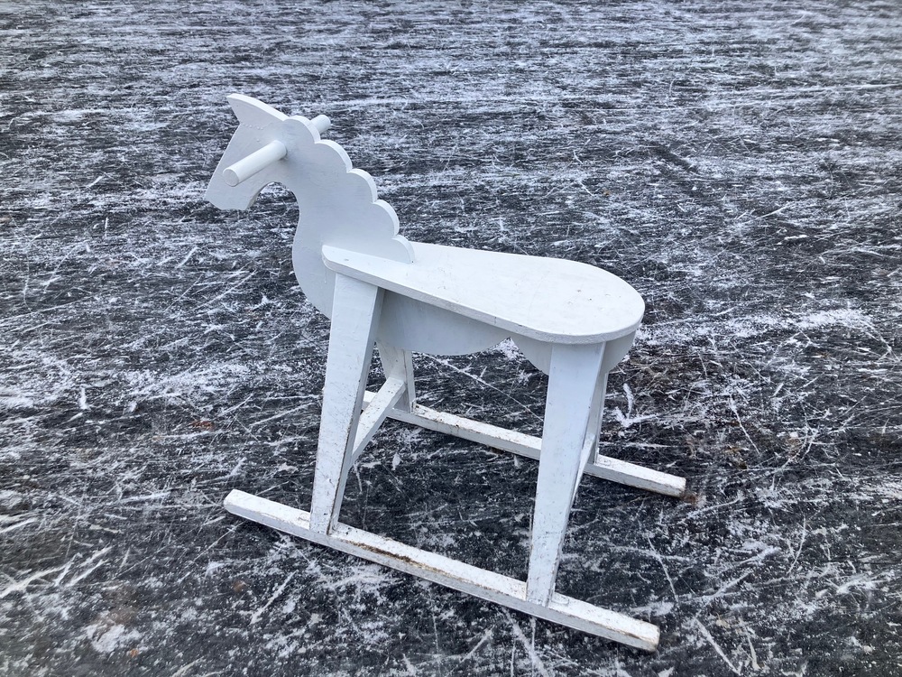 小さい子どもはその木馬にのり、保護者や兄弟に押してもらいながらスケートを楽しむことができます。