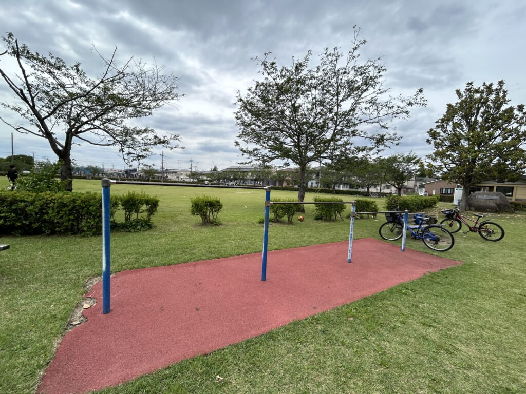 最近ではあまり見なくなった鉄棒。この日は小学生の男の子が遊んでいました。全体的に広々していて、地面も綺麗。整備されている感じがします。