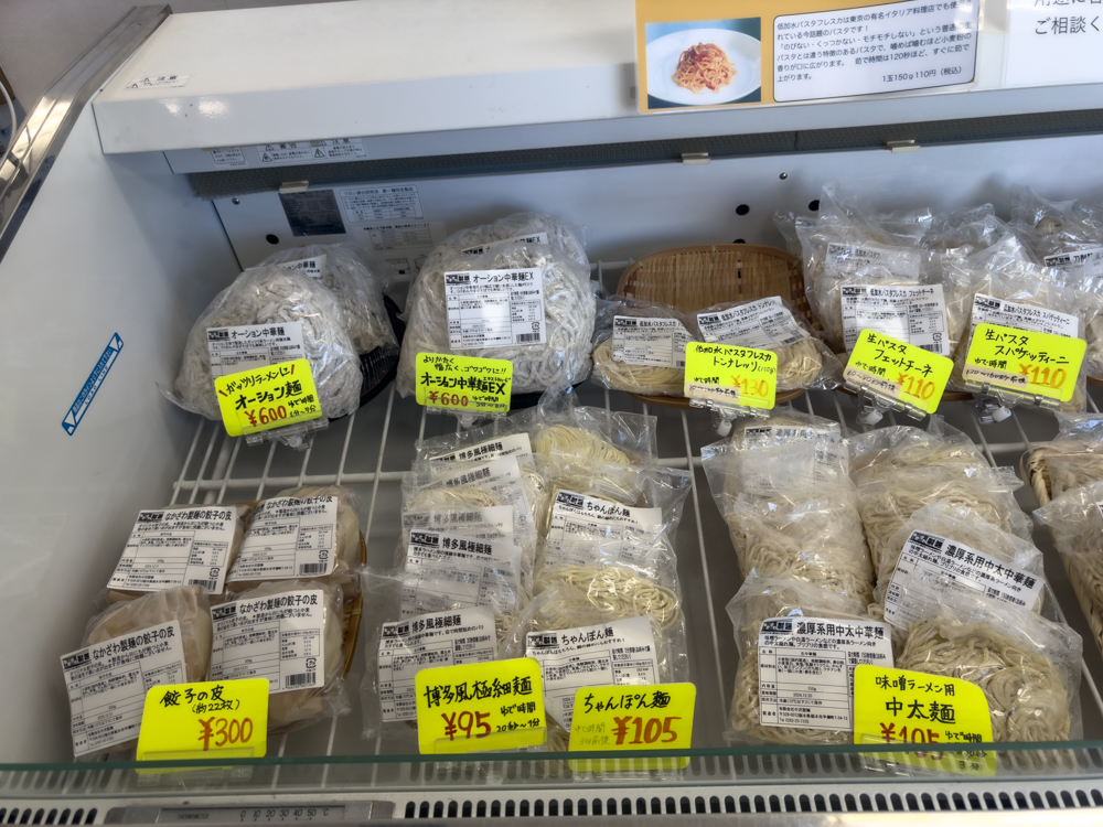 最初の麺売り場とは別のケースに目を移すと、また違った麺のラインナップが。なかなか普段お目にかかれない麺もあると、どのような味と食感なのか気になりますね。