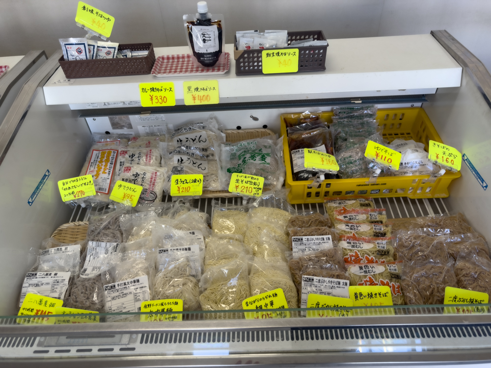蕎麦を目的に買いに来た人にとって、これだけのおいしそうな麺の数々を見たら何を買ったらいいのかわからなくなってしまうかもしれません。うれしい誤算ですね。