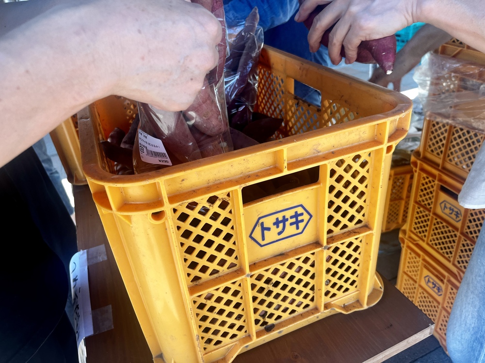 戸崎農園さんという農家さんがちょうど1袋200円で「熟成芋の詰め放題」をやっていました。