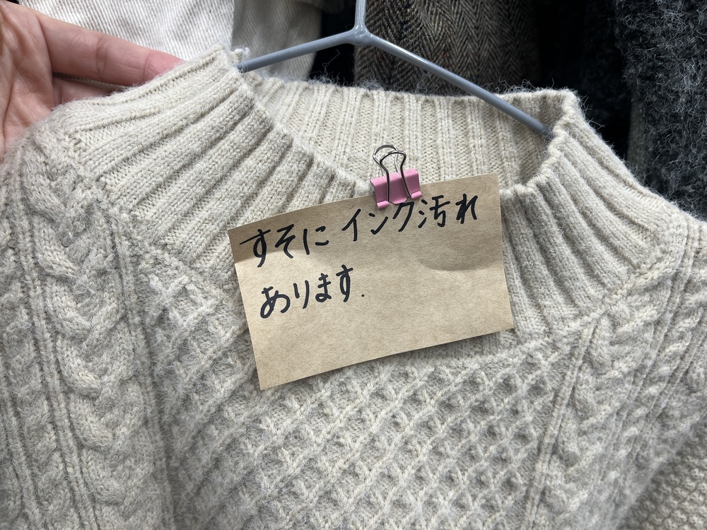 汚れが目立つ難ありのお洋服も、しっかりその旨が記載されていて好印象。