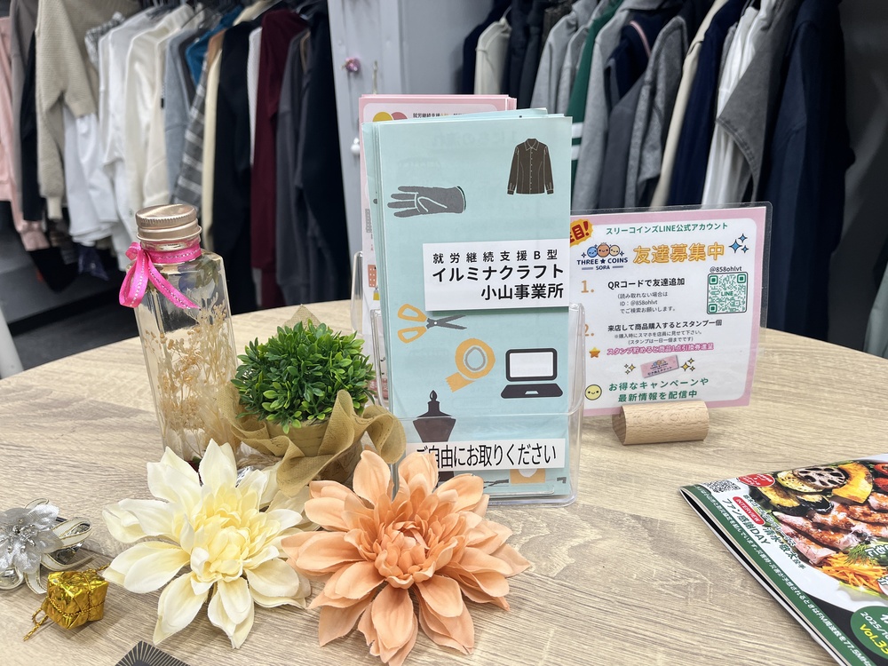 スリーコインズSORAは小山市内で定期的に開催されているフリーマーケット、おやまいちにも出店しているそうです。
