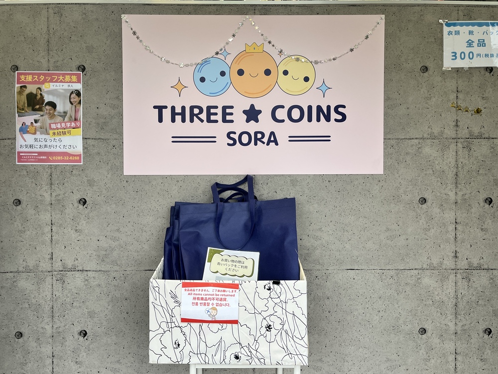 今回ご紹介するのは、古着やバッグ、靴など全て300円(税抜)で取り扱っている「THREE★COINS SORA(以下、スリーコインズSORA)」。