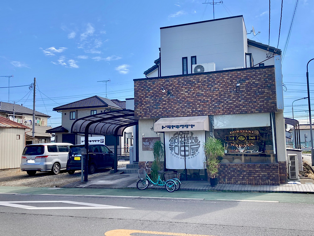 JR間々田駅西口から徒歩2分。ご当地スーパーかましんの駐車場の隣、乙女公園の向かいにあるのは「ドラヤキワダヤ」。