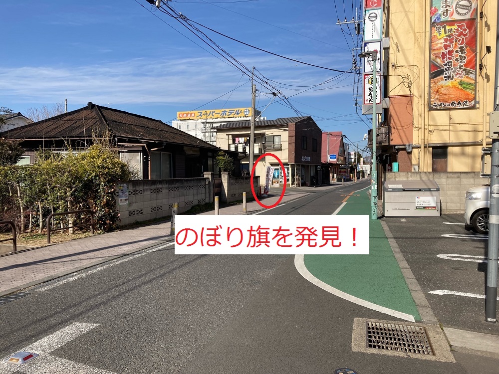まっすぐ行くと左手にのぼり旗が見えてきました。