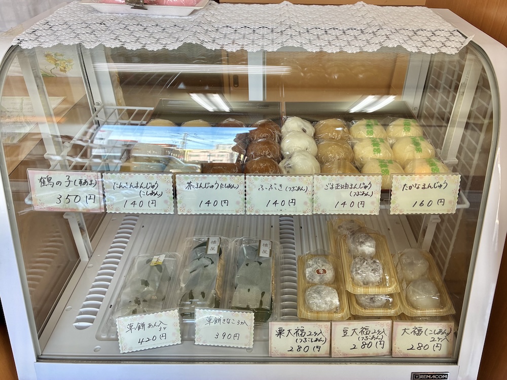 レジ横のガラスケースにもおまんじゅうがたくさんあります♪