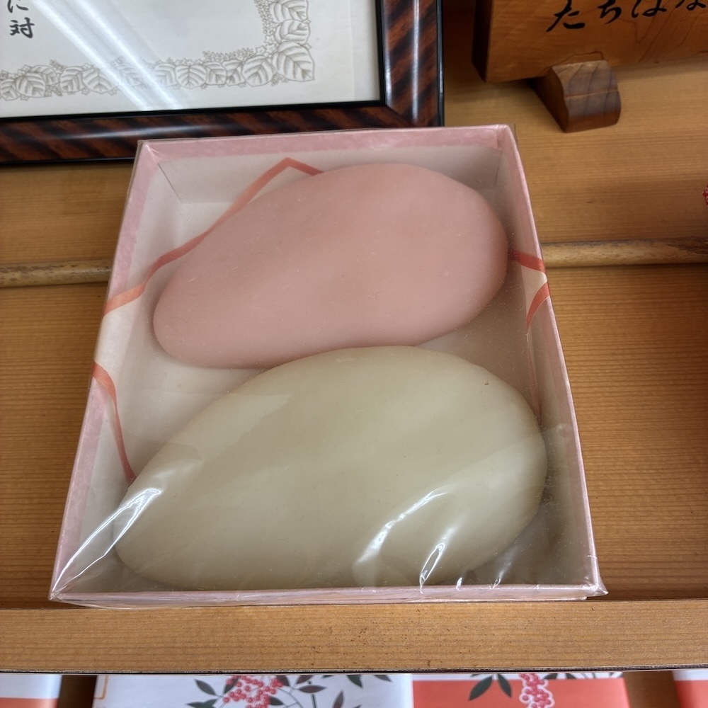 ガラスケースの中には、橘屋菓子店さん独自のこちらのお菓子が箱詰めされていました。