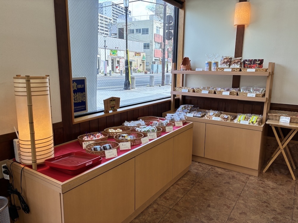 その他のお煎餅やチョコ菓子などの販売品も左側の棚にあります。